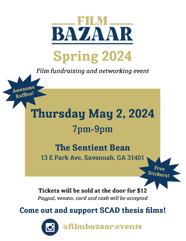 Film Bazaar is a networking and fundraising event for SCAD school of film and acting students. The public is more than welcome to join!